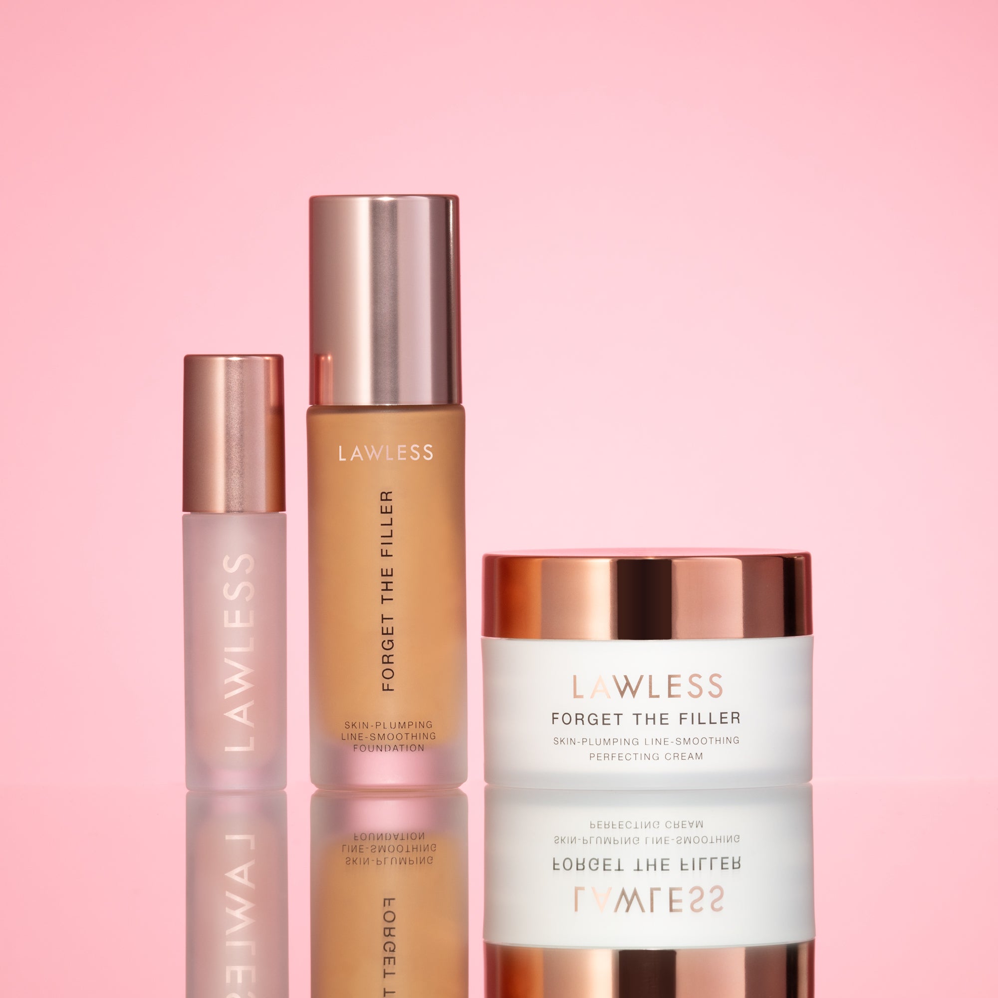 This three-step routine pairs our bestselling Forget The Filler Perfecting Cream, Foundation, and Lip Plumper in Rosy Outlook to create a flawless base and a polished finish that lasts all day.