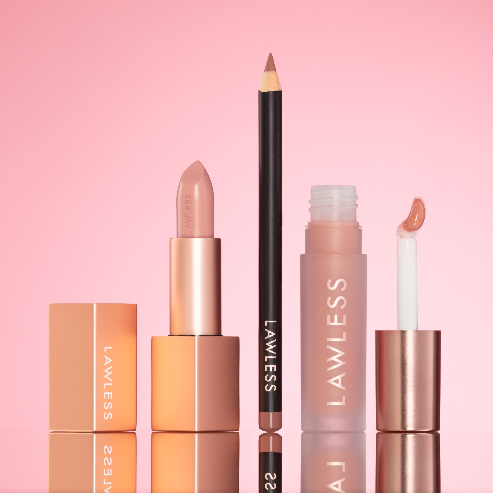 Curated liner, lipstick, gloss lip combo featuring our shade Nudie in our Nude Forget The Filler Gloss collection..